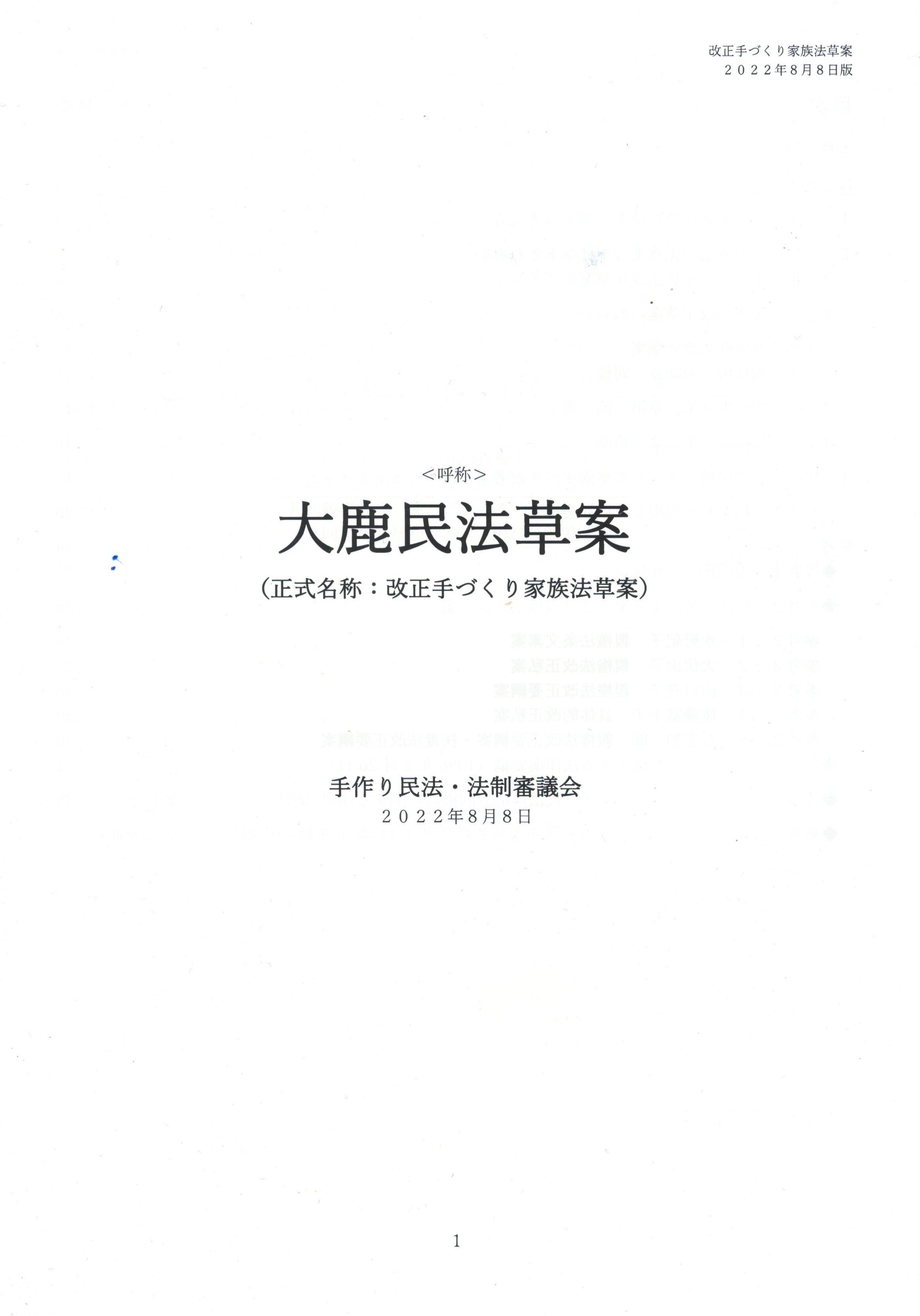 正式名称は「手づくり家族法改正草案」。大鹿民法草案は、合宿で議論した大鹿村にちなんで名付けられた。